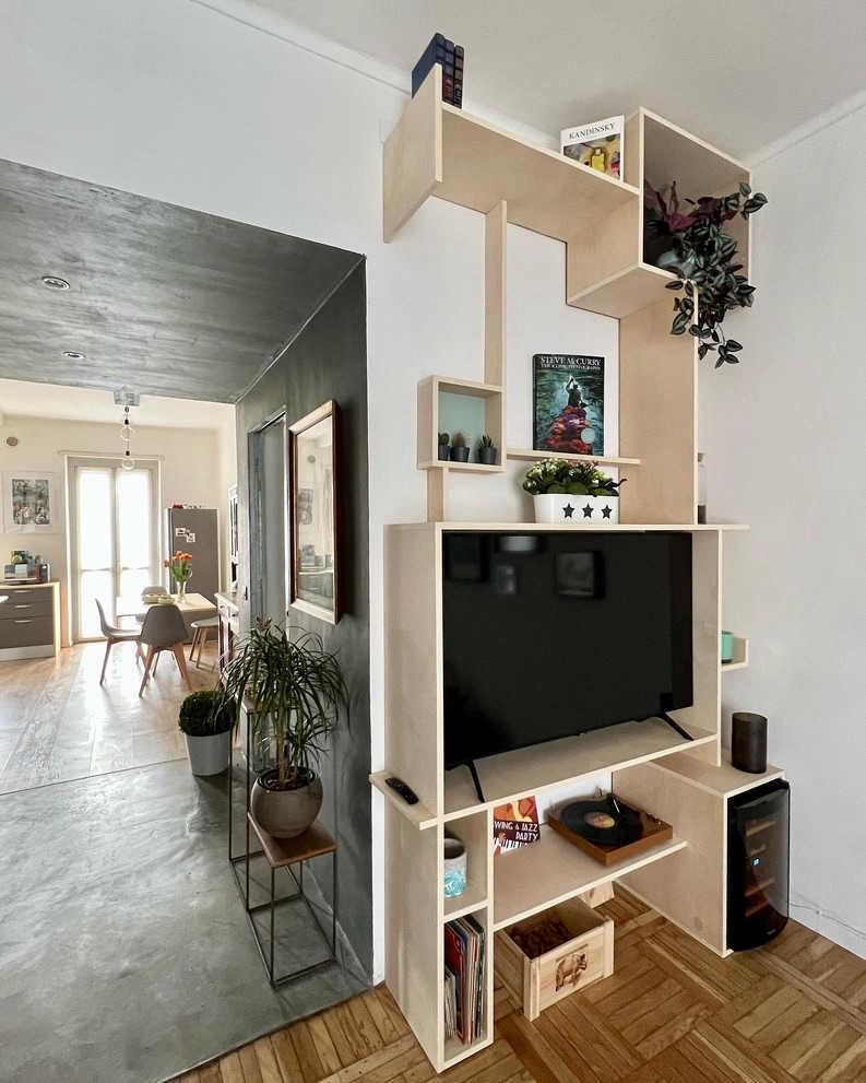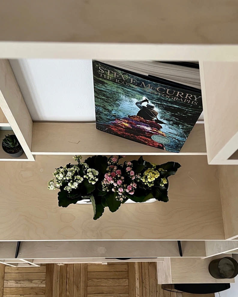 Le linee pulite ed essenziali della libreria Orione nascondono in sé un universo articolato. Lo spazio si scompone in una complessità sottile di linee, piani e volumi che creano dei piccoli mondi che insieme costituiscono il disegno divenendo arredo stesso dell’ambiente.